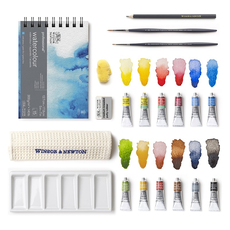 Zestaw najwyższej klasy 12 farb akwarelowych + akcesoria marki Winsor & Newton