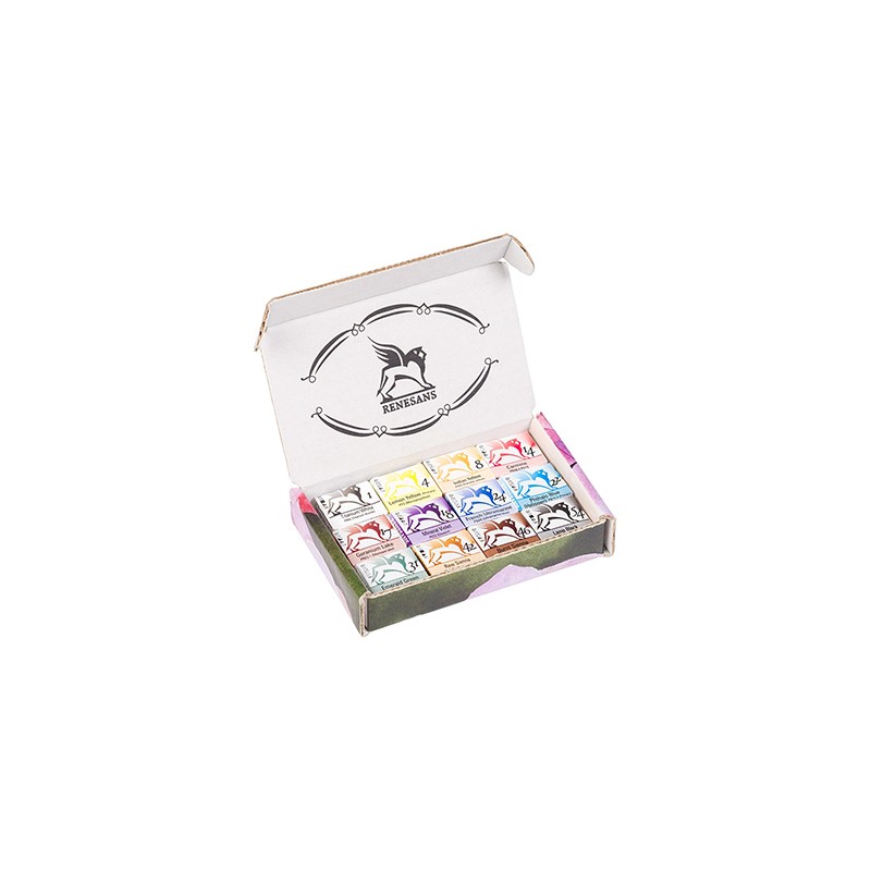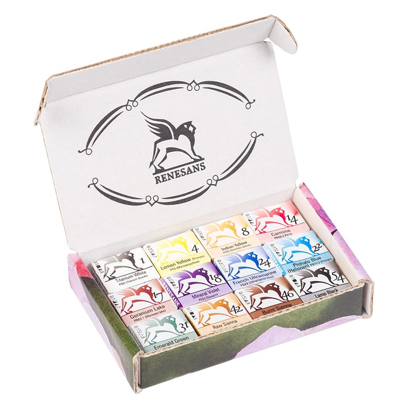 Profesjonalne akwarele wytwarzane ręcznie na bazie gumy arabskiej i miodu. Dzięki wysokiej jakości pigmentów, kolory są nasycone i odporne na działanie światła. Komplet zawiera 12 kolorów, które umieszczono w kartonowym, ekologicznym pudełku.