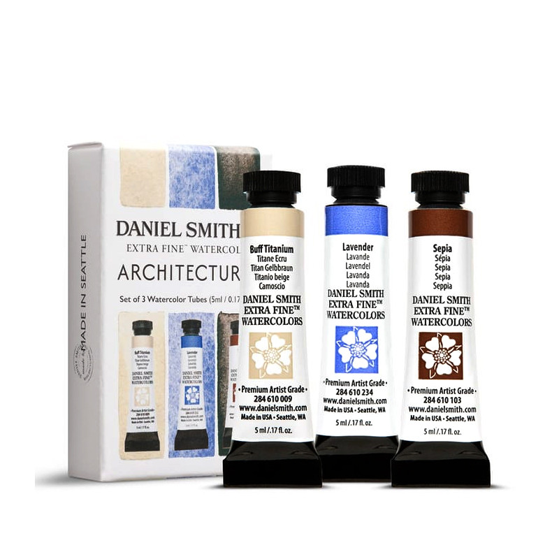 Architectural Set – farby akwarelowe Daniel Smith Extra Fine Watercolor. Zestaw 3 kolorów farby akwarelowej w tubkach po 5 ml. Więcej szczegółów
