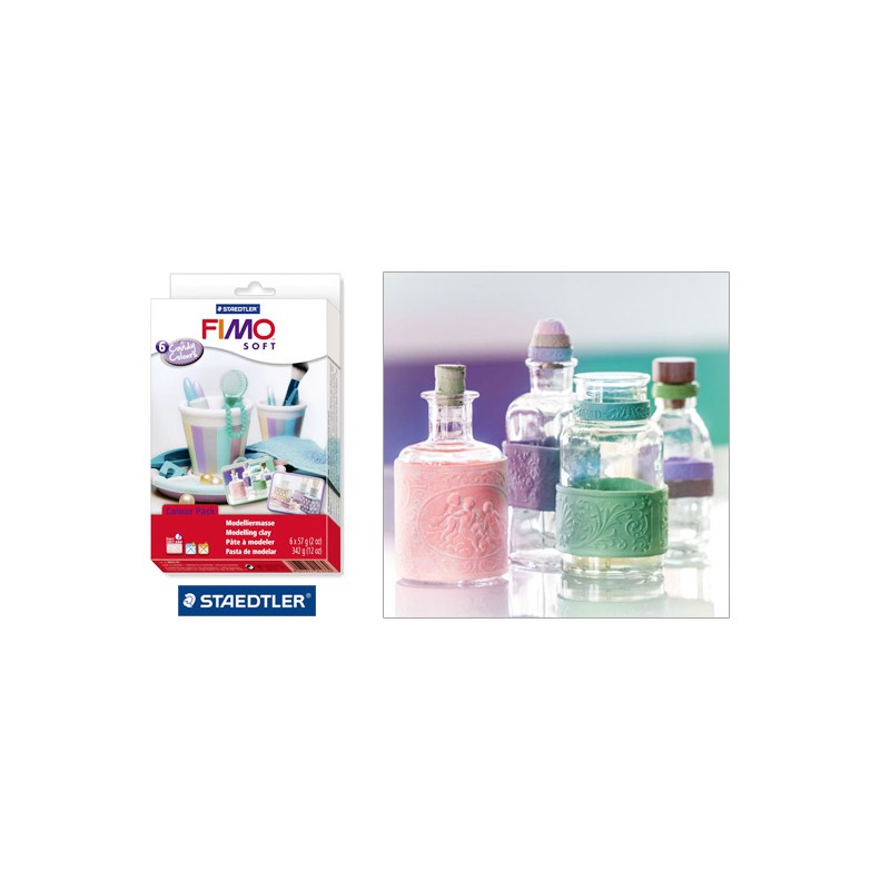 Zestaw mas plastycznych FIMO soft i Fimo Effect. Zawiera 6 kostek po 57g. W skład zestawy wchodzą kolory takie jak: