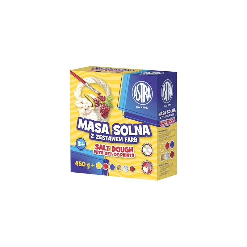Masa solna do modelowania marki Astra + zestaw 6 farb w słoiczkach o pojemności 10 ml. 450 g suchej mieszanki do stworzenia masy plastycznej. Więcej szczegółów