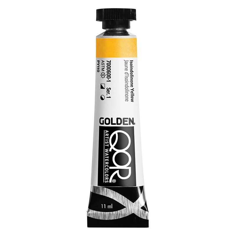 600 Isoindolinone Yellow – Farba akwarelowa QoR amerykańskiej marki Golden. Tubka o pojemności 11 ml.