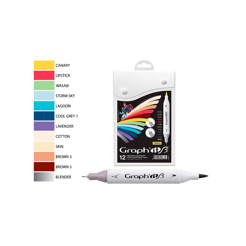 Zestaw dwustronnych markerów Graph'it Brush. Dwie końcówki: pędzelkowa i cienka 0.5mm.