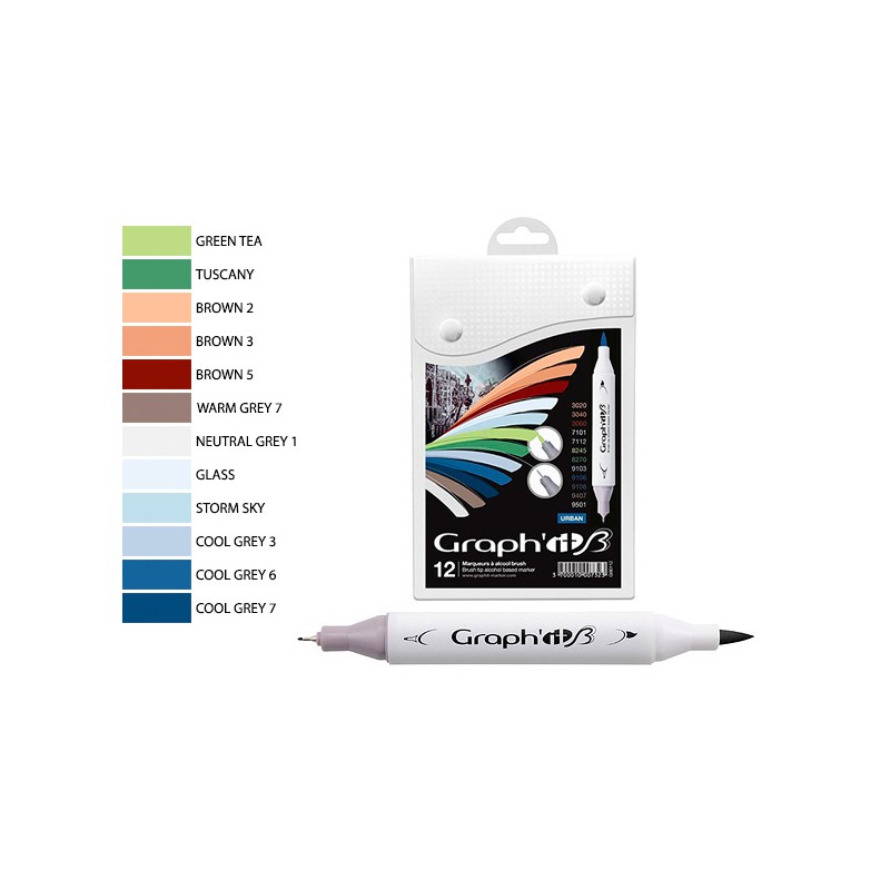 Zestaw dwustronnych markerów Graph'it Brush. Dwie końcówki: pędzelkowa i cienka 0.5mm.