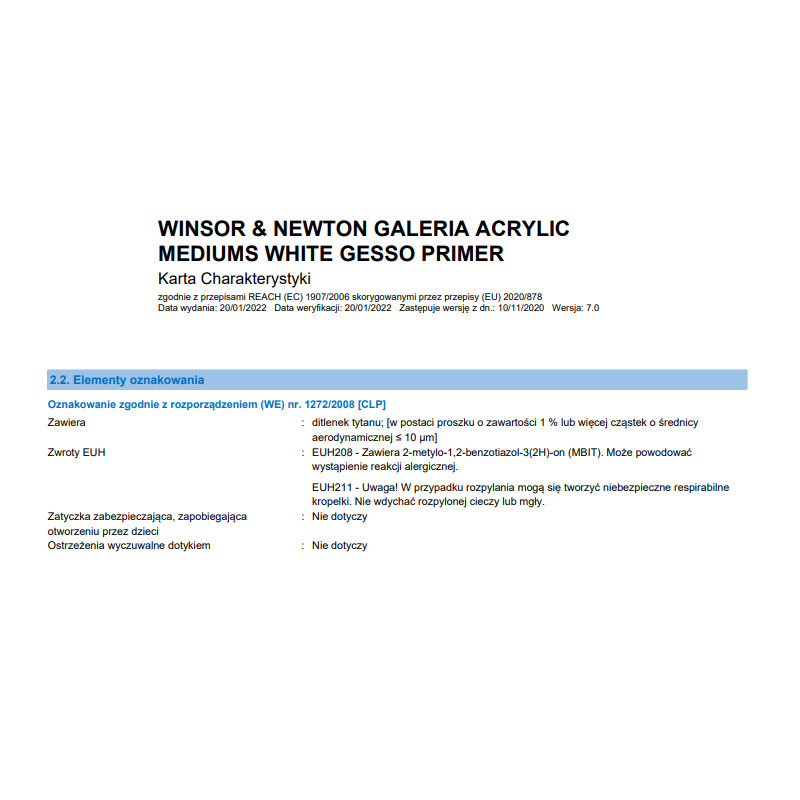 White Gesso Primer Galeria Winsor & Newton. Biały, uniwersalny grunt pod farby olejne, akrylowe i gwasze.