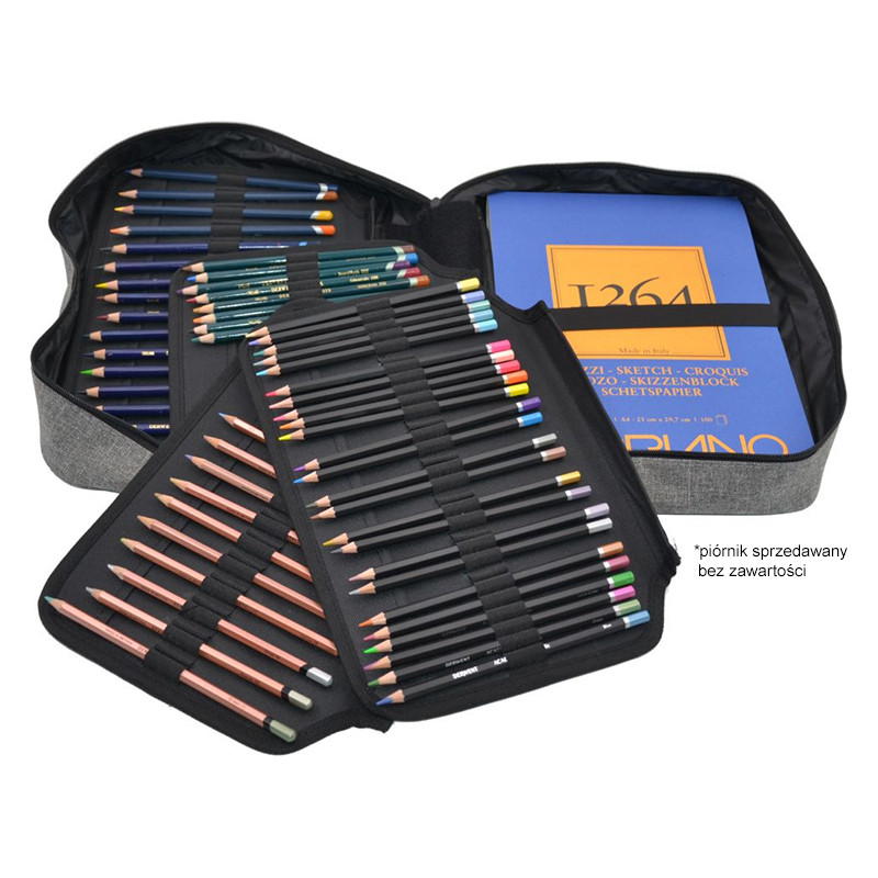 Piórnik do przechowywania kredek, ołówków, pisaków i akcesoriów – 220 przegródek. Piórnik pomieści szkicownik formatu A4. Więcej szczegółów