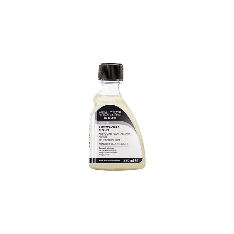 Płyn do czyszczenia zabrudzonych powierzchni w obrazach olejnych. Aby nie uszkodzić dzieła, przed rozpoczęciem właściwych prac, należy nanieść niewielką ilość preparatu na brzegu podobrazia. Do nakładania polecamy wykorzystywać szmatkę lub watę. Po zakończonych zabiegach, zanim naniesiemy werniks na obraz, należy usunąć resztki płynu za pomocą terpentyny. Wstrząsnąć przed użyciem. Pojemność 250ml.