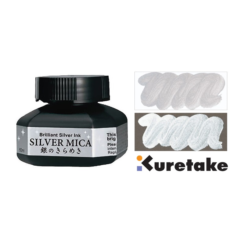 Silver Mica marki Kuretake. Srebrny, błyszczący tusz pigmentowy na bazie wody. Produkt przeznaczony do kaligrafii, scrapbookingu itp. Więcej szczegółów