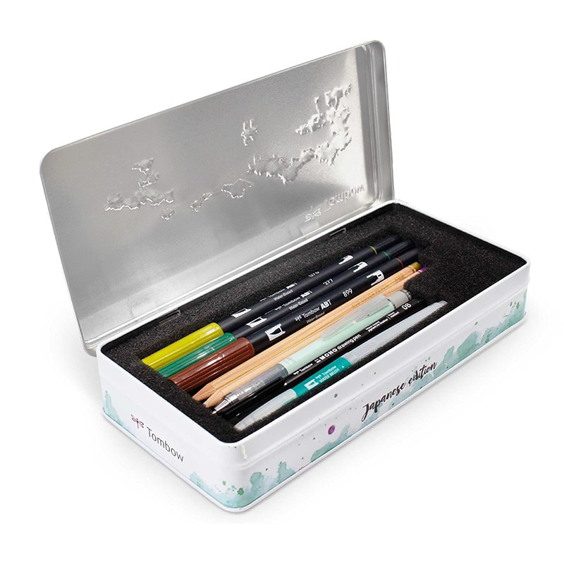 Urban Sketching Set – 9 elementowy zestaw marki Tombow. Metalowa kasetka z akcesoriami do miejskiego szkicowania. Więcej szczegółów
