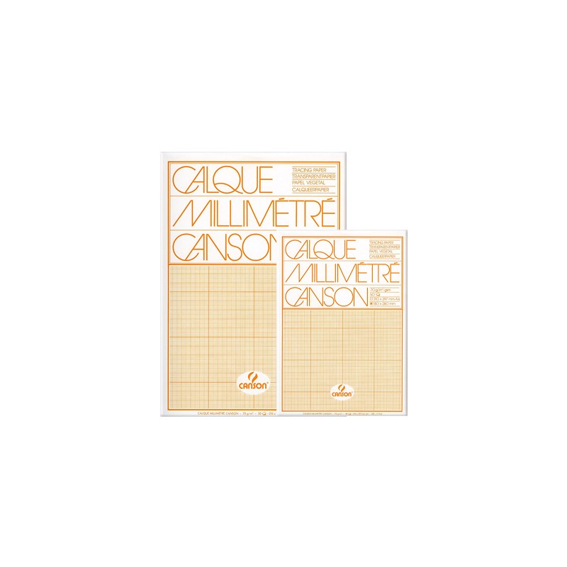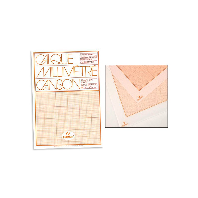 Blok kalki milimetrowej. Produkt firmy Canson zawiera 50 arkuszy A3 (dostępny obszar roboczy 27 x 40 cm) w gramaturze 70 g/m².