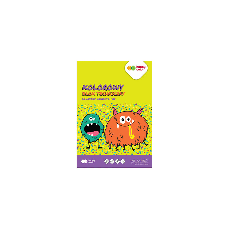 Kolorowy blok techniczny marki Happy Color w formacie A4. 10 arkuszy o gramaturze 170 g.