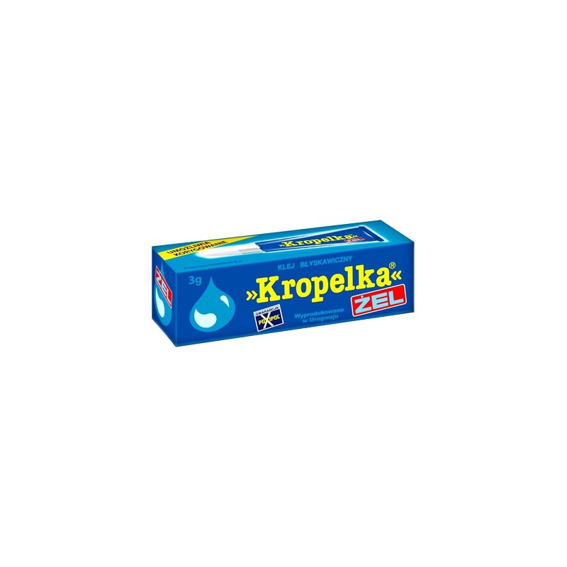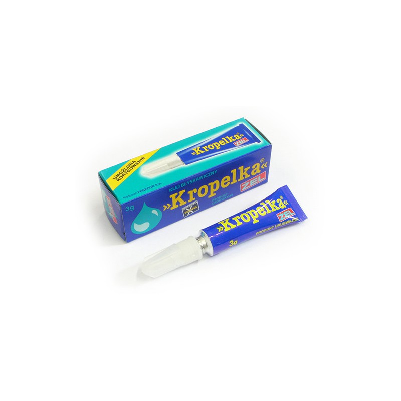 Kropelka jest klejem błyskawicznym, łatwym w użyciu, służącym do drobnych napraw w domu. Skleja w kilka sekund praktycznie każdego rodzaju materiały (ceramika, plastik, drewno, metal, guma, papier, porcelana i inne). Doskonały do domowych napraw, prac hobbystycznych i rękodzielniczych i innych czynnościach.