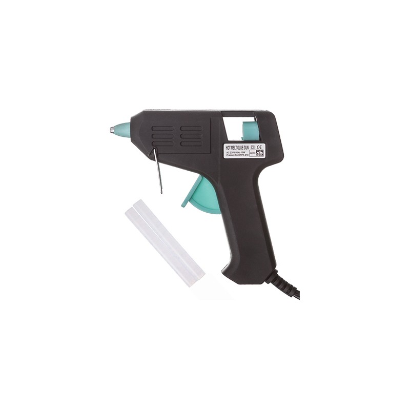Niewielkich rozmiarów pistolet do klejenia na gorąco marki DP Craft. Pistolet zasilany na prąd, posiada europejską wtyczkę typu C. Kompatybilne wkłady kleju do tego modelu powinny mieć 7 mm średnicy. Sam pistolet ma wymiar 11 x 11 cm. Klej na gorąco przeznaczony jest do wszelkich prac artystycznych, tworzenia kolaży czy prac w technice scrapbookingu. Można nim przyklejać papier, tkaninę, plastik, drewno itp. Moc pistoletu to 10 W. Długość kabla 150 cm.
