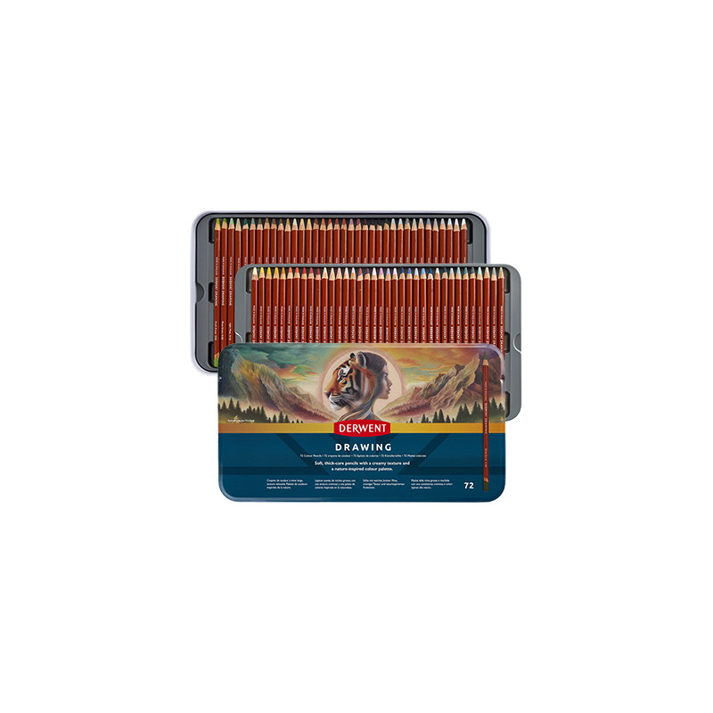 Wysokiej jakości, artystyczne kredki z serii Drawing angielskiej firmy Derwent. Pełna gama kolorystyczna obejmująca 72 kolory. Metalowa kaseta. Więcej szczegółów