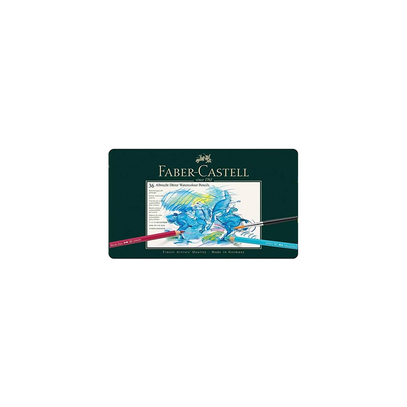 Zestaw kredek akwarelowych Albrecht Dürer marki Faber Castell. 36 wodorozmywalnych kredek w podstawowej gamie kolorystycznej. Metalowe etui. Więcej szczegółów