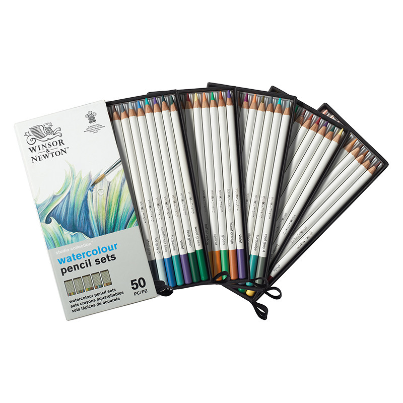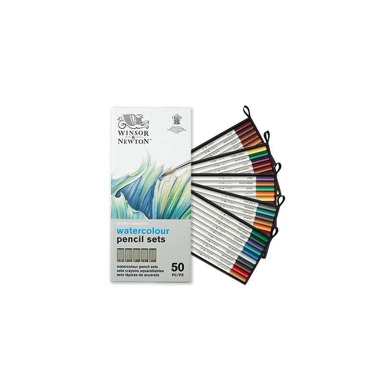 Studio Collection Watercolour Pencil Sets, Winsor & Newton – zestaw kredek akwarelowych, 50 kolorów.