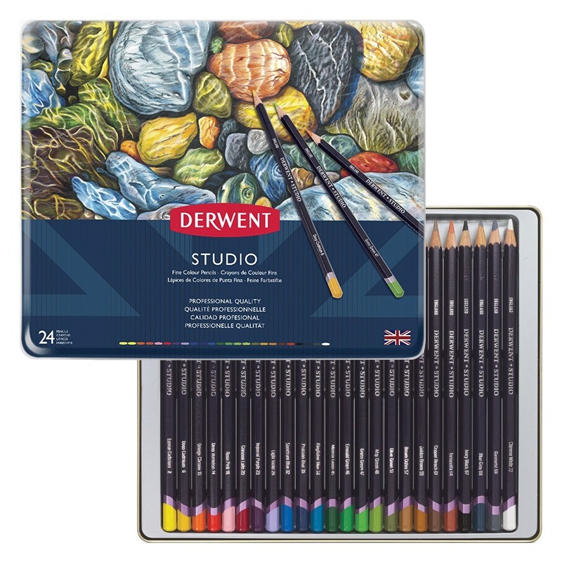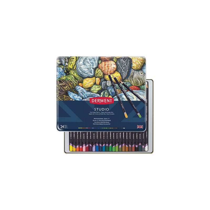 Derwent STUDIO charakteryzują się najwyższą jakością pigmentów użytych do ich produkcji oraz solidnością wykonania. Produkowane w identycznej gamie kolorów jak kredki serii Artists. Różnica polega na grubości rdzenia i oprawce kredki. Rdzeń w kredkach STUDIO jest cieńszy (3,4 mm), a oprawka ma formę graniastą, zapewniającą pewny uchwyt kredki. Mniejsza średnica rdzenia sprawia, że kredki tej serii znakomicie nadają się do wszelkiego rodzaju precyzyjnych rysunków. Kredki gwarantują wysoka intensywność barw i odporność na działanie światła.