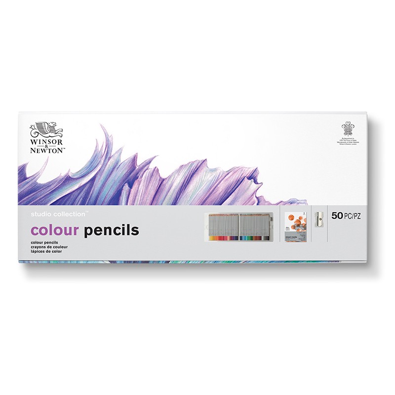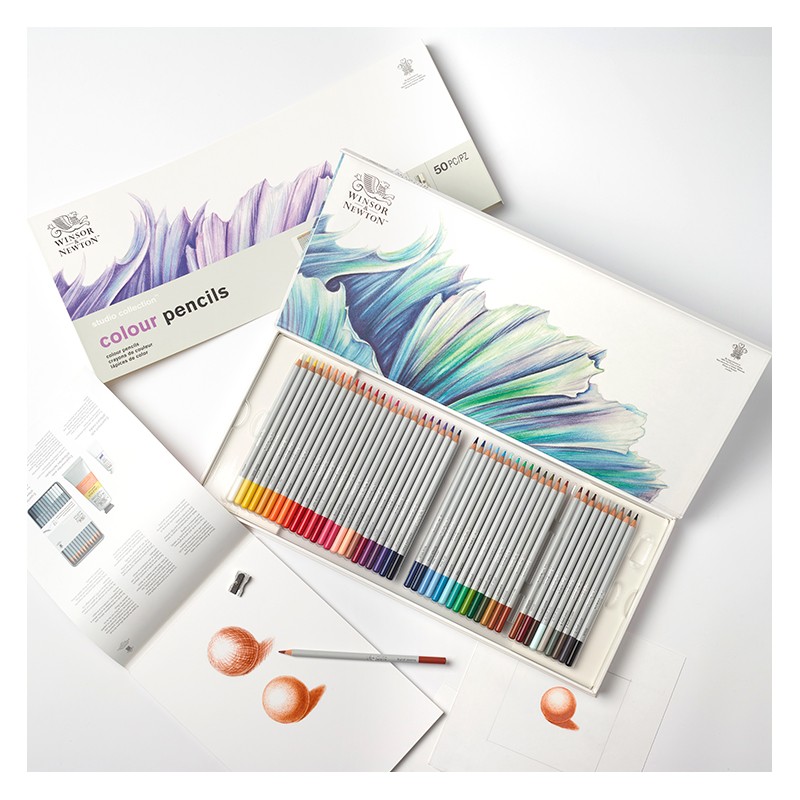 Zestaw artystycznych kredek rysunkowych Colour Pencils Studio Collection marki Winsor & Newton. 50 elementów.