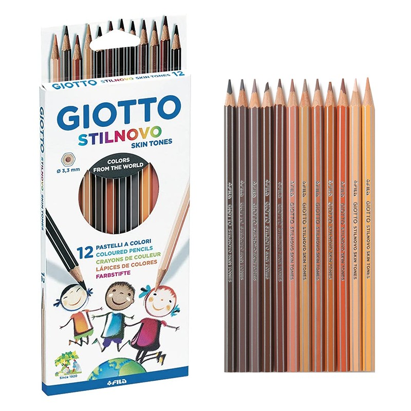 Giotto Stilnovo - zestaw kredek rysunkowych włoskiego producenta Fila. 12 kolorów w portretowej gamie kolorystycznej.