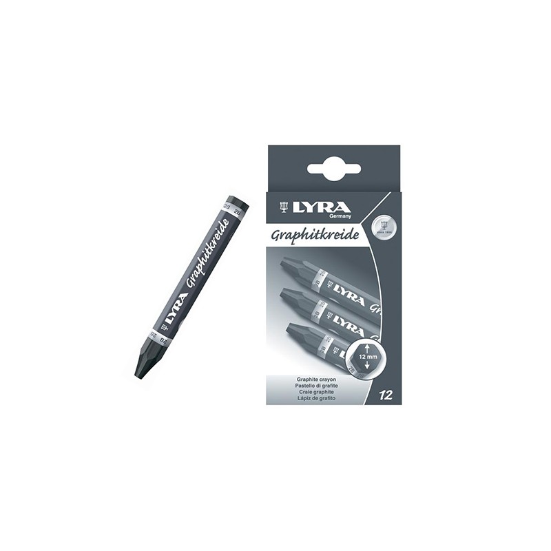 Kredy grafitowe Lyra zaprojektowane zostały specjalnie do szkicowania i cieniowania dużych powierzchni oraz nadawania głębi. Sześciokątny, masywny sztyft o średnicy 12mm i długości 12cm, daje wspaniałą kontrolę stawianej linii i komfort długiego użytkowania. Grafit dobrze reaguje na zmianę docisku do podłoża, co błyskawicznie przejawia się zwiększeniem lub zmniejszeniem szerokości kreski i poziomu jej krycia. Duża gęstość sztyftu wpływa na redukcję zużycia materiału.