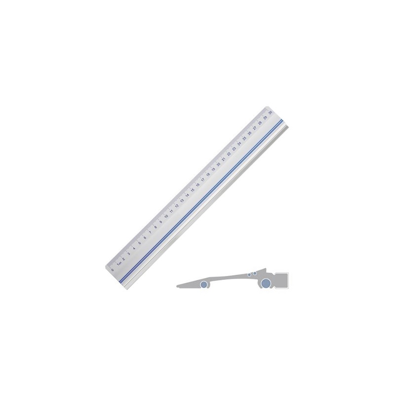 Metalowa linijka z precyzyjną podziałką, wyposażona od spodu w dwie gumowe podkładki antypoślizgowe. Wykonana z anodowanego aluminium linijka jest lekka, poręczna i wygodna w użytkowaniu. Podziałka w centymetrach została nadrukowana na metal jest trwała i dobrze czytelna. Wzdłuż podziałki biegnie podcięcie krawędzi przystosowane do kreślenia. Stalowe okucie jednej krawędzi pomaga w precyzyjnym cięciu nożem i zapobiega niszczeniu linijki. Linijka o długości 30 cm, opakowana w etui z tworzywa.