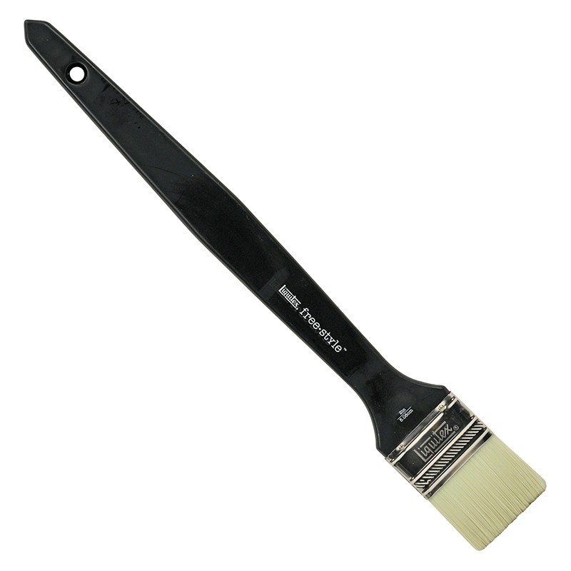 2" Broad Flat – szeroki, płaski pędzel serii Freestyle marki Liquitex na długiej rączce. Syntetyczne, wytrzymałe włosie.