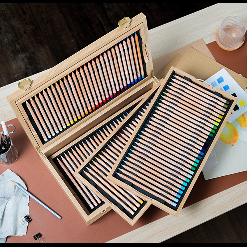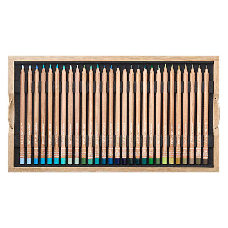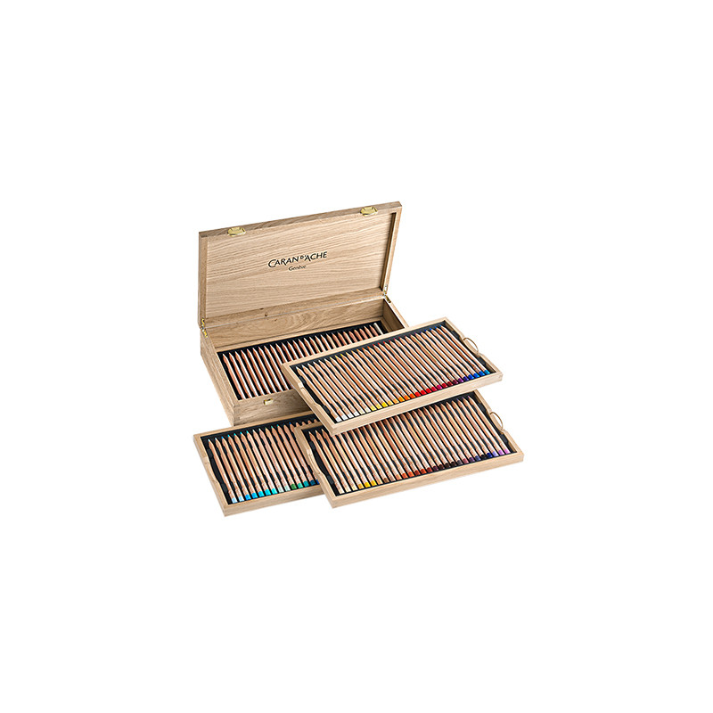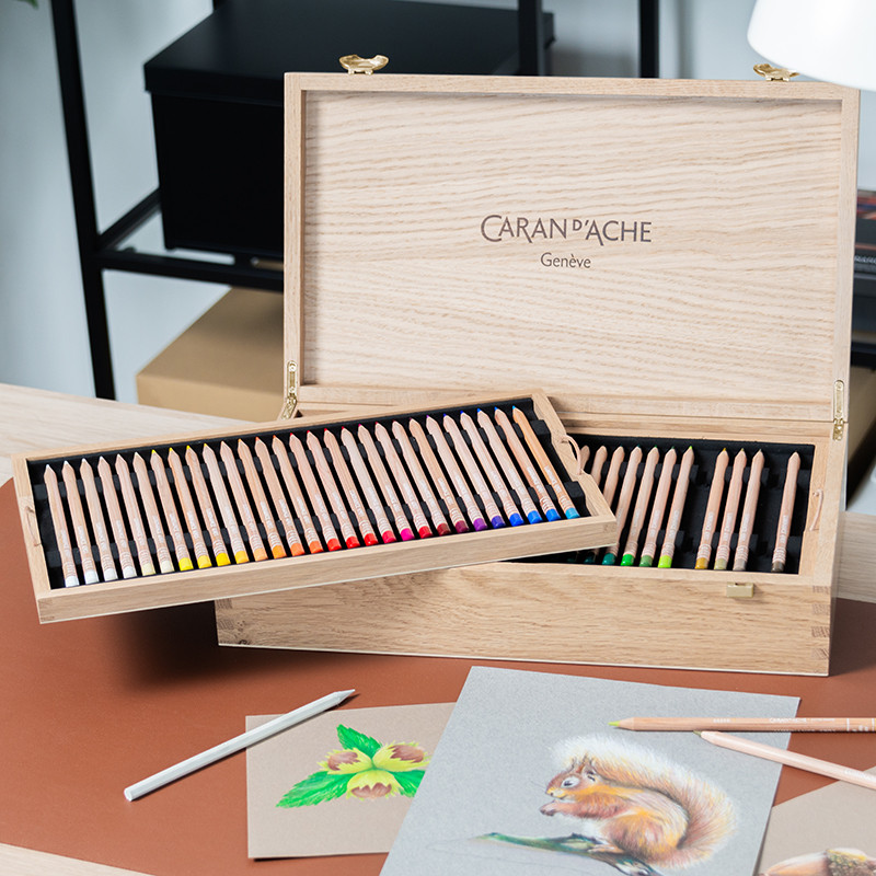 Kredki rysunkowe Luminance 6901® szwajcarskiej firmy Caran d'Ache w drewnianej kasecie.