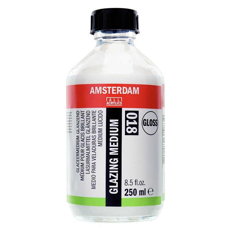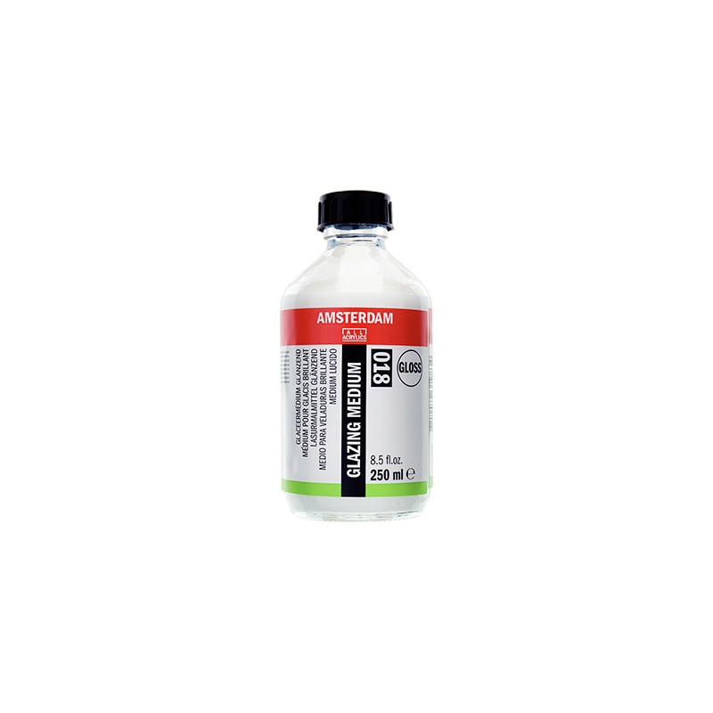 Medium laserunkowe, błyszczące marki Royal Talens. Aby nadać farbie akrylowej maksymalną przeźroczystość i świetlistość należy zmieszać ją z medium w dowolnej proporcji. Mleczny płyn po wyschnięciu staje się całkowicie transparentny i wodoodporny. Najlepiej stosować z farbami akrylowymi o niskiej lub średniej sile krycia. Gloss glazing medium po zmieszaniu z farbą nieznacznie skraca czas schnięcia i niweluje ślady pociągnięć pędzla. Pozostawia błyszczący finisz. Medium na bazie dyspersyjnej żywicy akrylowej.