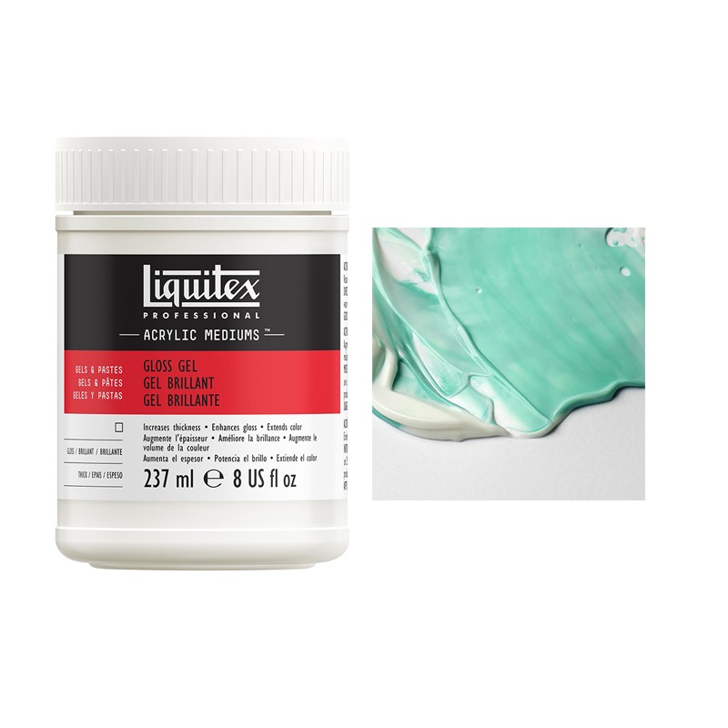 Media w żelu w przeciwieństwie do mediów płynnych, nie zmieniają wyjściowej konsystencji farb. Często używane są do technik impasto. Wzmacniają głębię koloru oraz nadają przejrzystości. Wydłużają czas pracy - schną dłużej niż pociągnięcia mało gęstą farbą. Media te także modyfikują farby akrylowe w różny sposób, gdyż w ich skład wchodzi żywica akrylowa, co poprawia przylepność i trwałość koloru.