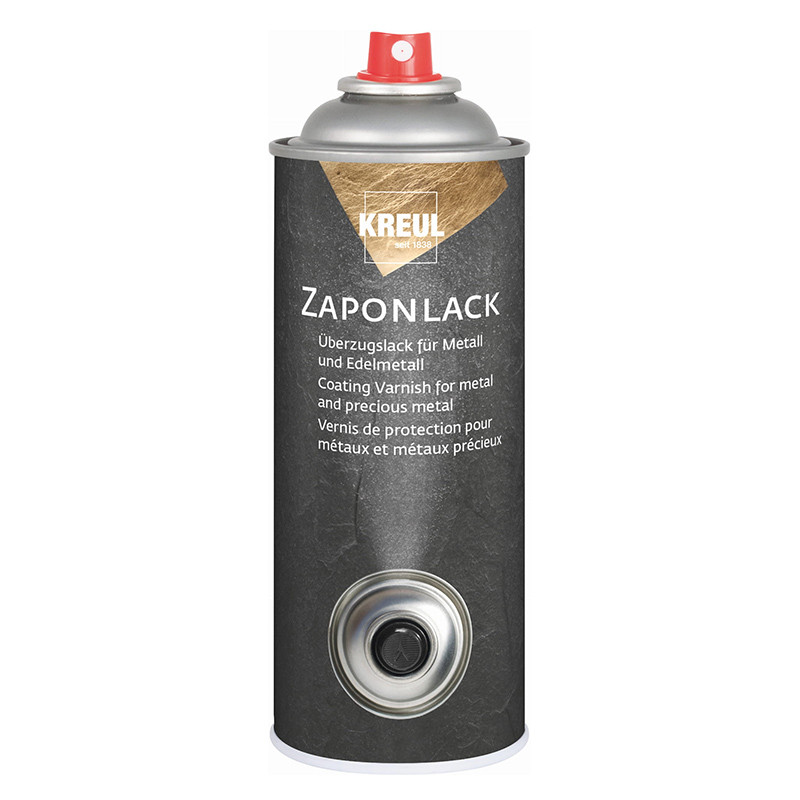 Lakier bezbarwny do złoceń Zaponlack marki Kreul, spray 400 ml. Do zabezpieczania szlagmetalu, szlag aluminium i złota płatkowego. Więcej szczegółów