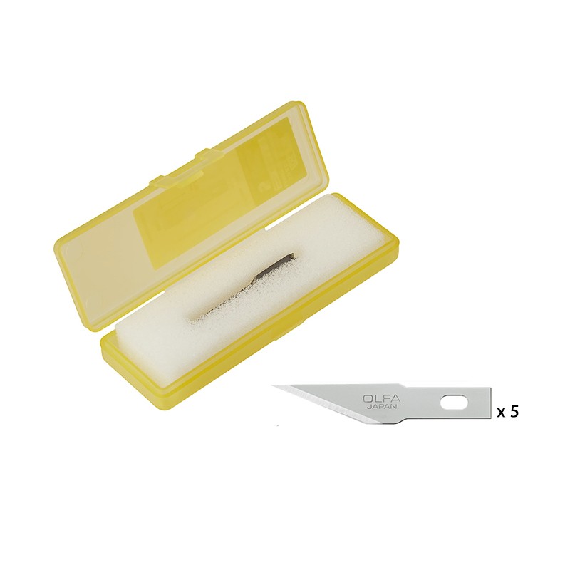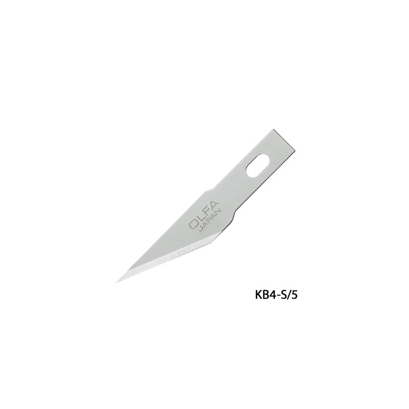 Ostrza wymienne KB4-S/5 marki OLFA. Plastikowe etui zawiera 5 sztuk ostrzy.