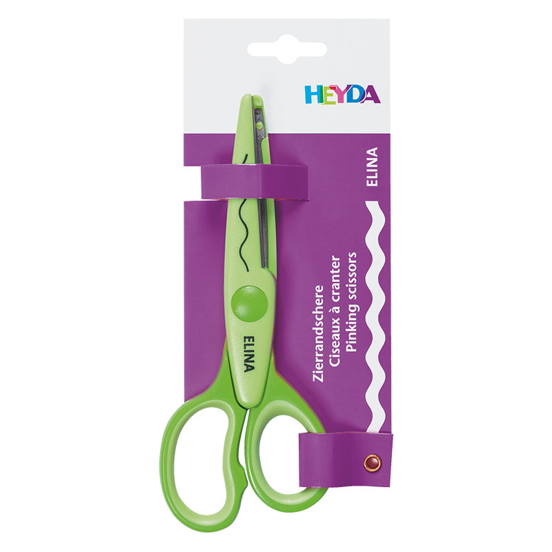 Nożyczki dekoracyjne marki Heyda. Ozdobne ostrze, plastikowa forma bezpieczna dla dzieci. Do scrapbookingu i prac plastycznych. Więcej szczegółów