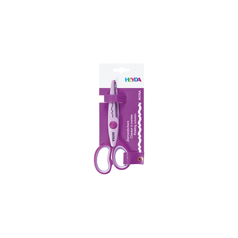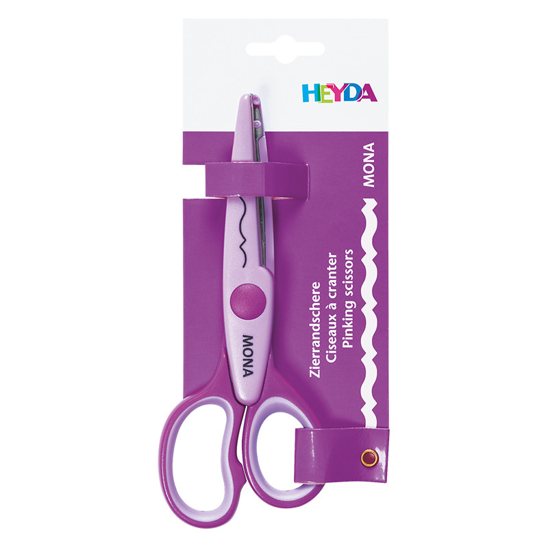 Nożyczki dekoracyjne marki Heyda. Ozdobne ostrze, plastikowa forma bezpieczna dla dzieci. Do scrapbookingu i prac plastycznych. Więcej szczegółów