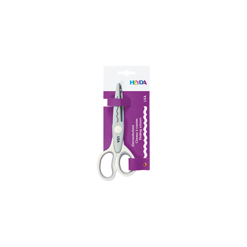 Nożyczki dekoracyjne marki Heyda. Ozdobne ostrze, plastikowa forma bezpieczna dla dzieci. Do scrapbookingu i prac plastycznych. Więcej szczegółów