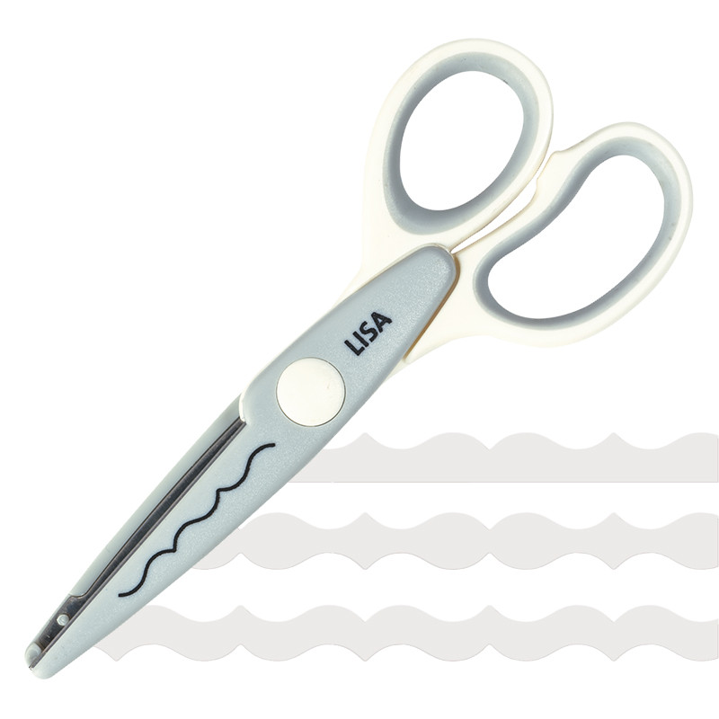 Nożyczki przeznaczone do wycinania ozdobnych wzorów w papierze. Ostrze zaprojektowano w ten sposób aby było bezpieczne w użytkowaniu dla dzieci. Nożyczki można wykorzystać do prac plastycznych, tworzenia w technice scrapbookingu, kart okolicznościowych itp. Na plastikowej części nożyczek nadrukowano wzór taki, jaki powstaje podczas cięcia. Nożyczki z systemem Soft Touch - posiadają ogumienie wewnątrz otworów na palce. Ostrza wykonane z metalu odpornego na rdzę.