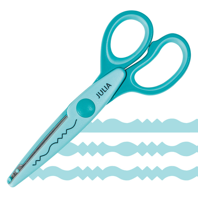Nożyczki przeznaczone do wycinania ozdobnych wzorów w papierze. Ostrze zaprojektowano w ten sposób aby było bezpieczne w użytkowaniu dla dzieci. Nożyczki można wykorzystać do prac plastycznych, tworzenia w technice scrapbookingu, kart okolicznościowych itp. Na plastikowej części nożyczek nadrukowano wzór taki, jaki powstaje podczas cięcia. Nożyczki z systemem Soft Touch - posiadają ogumienie wewnątrz otworów na palce. Ostrza wykonane z metalu odpornego na rdzę.