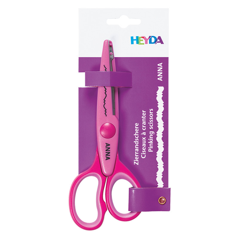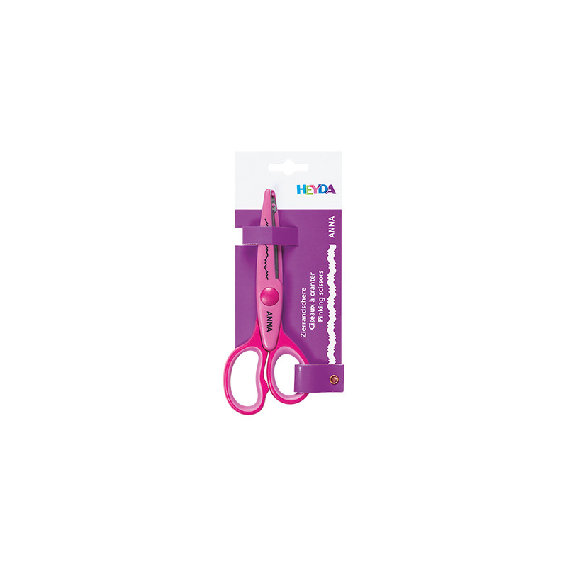 Nożyczki dekoracyjne marki Heyda. Ozdobne ostrze, plastikowa forma bezpieczna dla dzieci. Do scrapbookingu i prac plastycznych. Więcej szczegółów
