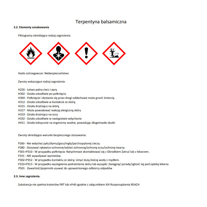 Terpentyna Balsamiczna do rozrzedzania farb olejnych oraz do czyszczenia pędzli i narzędzi malarskich. Wysoka jakość, przystępna cena.