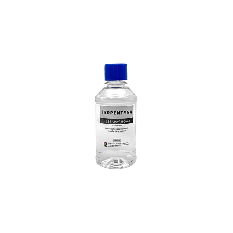 Terpentyna bezzapachowa do rozrzedzania farb olejnych oraz czyszczenia narzędzi. Doskonała alternatywa tradycyjnego rozpuszczalnika dla osób wrażliwych na jego intensywną, szkodliwą woń. Ze względu na dolegliwości, takie jak bóle głowy, nudności i podrażnienia skóry wielu artystów musiało ograniczyć swoje działania z farbami olejnymi. Terpentyny bezzapachowe i inne media rozrzedzające do olejów pozwalają na nowo doskonalić warsztat, związany z klasyczną techniką malarstwa.