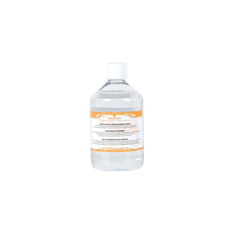 Rozpuszczalnik bezzapachowy (terpentyna bezwonna) - medium rozrzedzające do farb olejnych polskiej marki Renesans. Pojemność: 500ml.