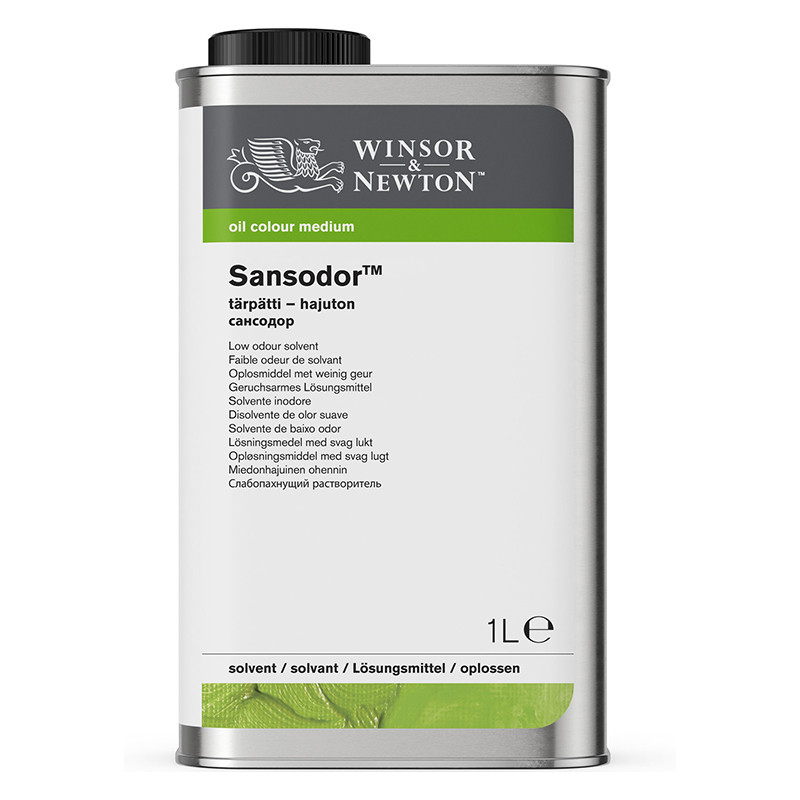 Sansodor Winsor & Newton 1 litr. Bezwonny rozpuszczalnik do farb olejnych i alkidowych. Przyśpiesza czas schnięcia farb. Może służyć do czyszczenia pędzli. Więcej szczegółów
