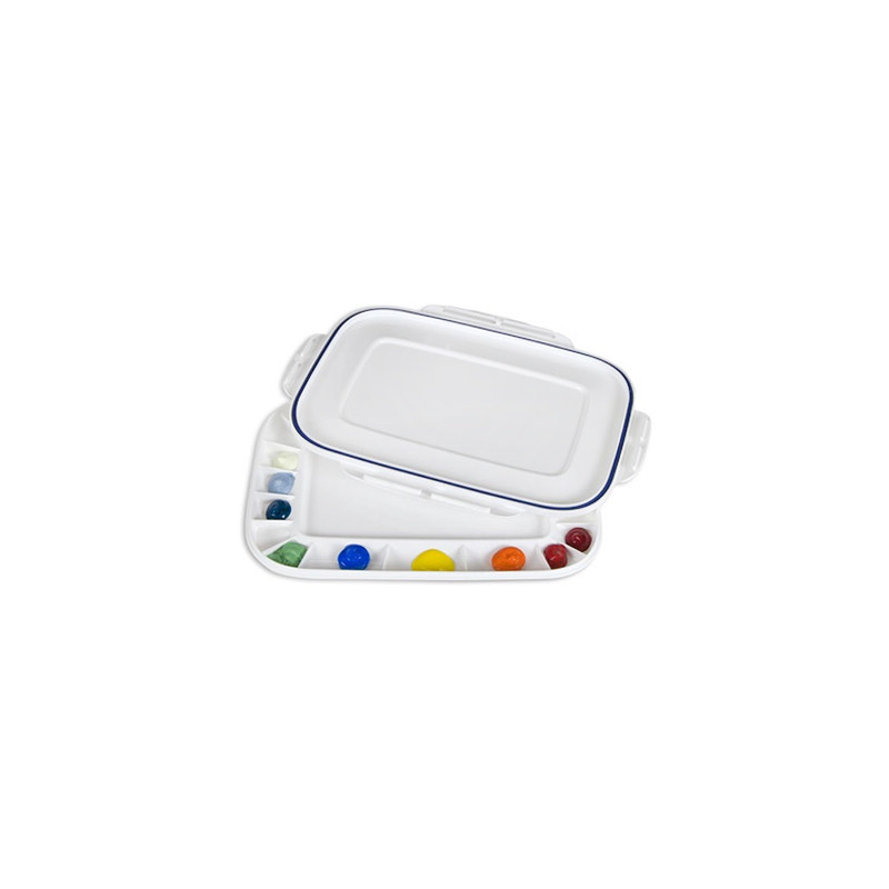 Plastikowa paleta Artelier Air-Tight Peel Off pozwala na zachowanie świeżości farb umieszczonych wewnątrz nawet przez wiele tygodni. Wszystko za sprawą dwuczęściowej konstrukcji i silikonowej uszczelki, która odcina dostęp powietrza po zamknięciu palety. Tworzywem, z jakiej wykonano paletę, jest bardzo twardy plastik o powierzchni, która ułatwia czyszczenie - akryle po wyschnięciu odkleisz jednym pociągnięciem niczym plaster, a farby olejne znikną po jednokrotnym przetarciu szmatką.