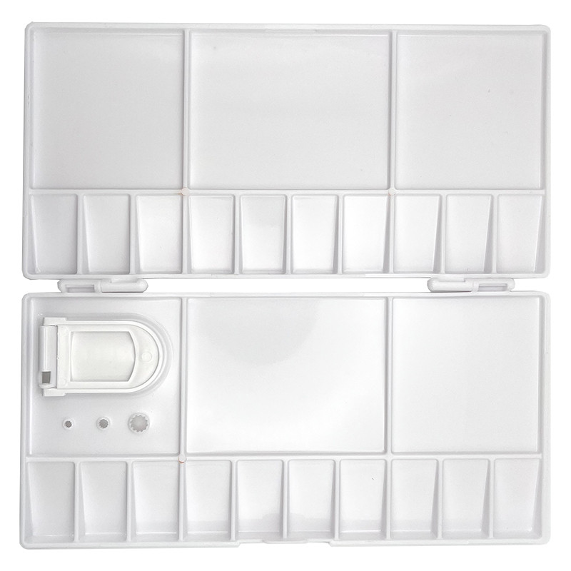 Paleta malarska plastikowa składana. Rozmiar palety 20 x 9.5 cm. Polecana szczególnie do farb akrylowych, temper, akwareli. Więcej szczegółów