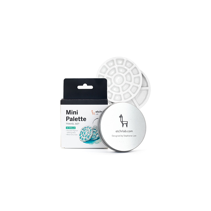 Mini Palette Travel Set Etchr Lab, 19 komór – zestaw 2 porcelanowych palet do farb akwarelowych.