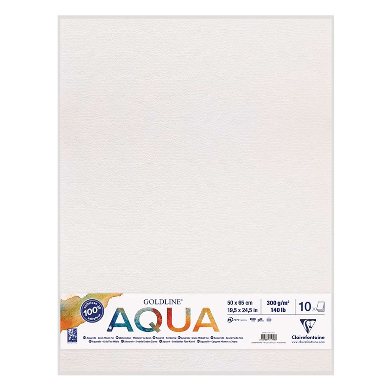 Papier do malarstwa akwarelowego Goldline Aqua marki Clairefontaine. Gramatura: 300 g/m², 50 x 65 cm. 100% celuloza. Opakowanie 10 arkuszy.