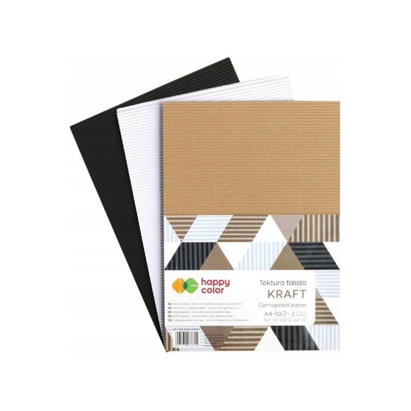 Tektura falista Kraft marki Happy Color. 10 kolorowych arkuszy tektury falistej w formacie A4. Do sklejania, wycinania i ozdabiania. Więcej szczegółów