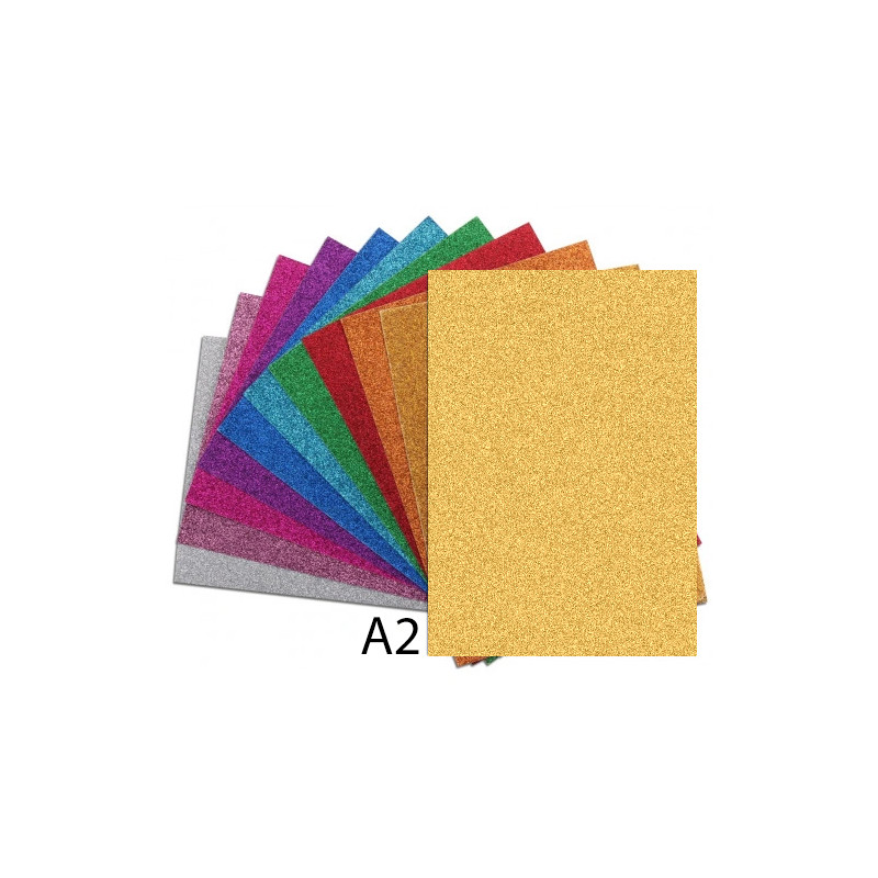 Papier z brokatem do tworzenia kartek okolicznościowych, dekoracji, albumów, kolaży, wszelkich prac robionych metodą scrapbookingu oraz do zabaw z dziećmi. Papier jest jednostronnie powleczony połyskującym i mieniącym się brokatem. Blok zawiera 10 arkuszy w formacie A2 (42 x 59.4 cm) w 10 różnych kolorach.