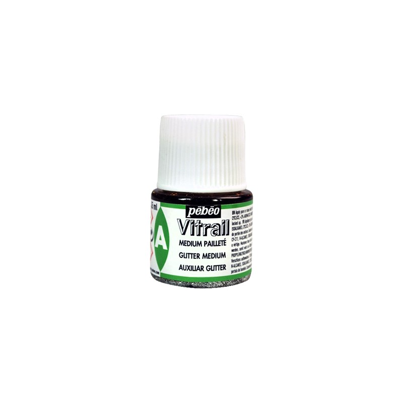 Glitter medium Vitrail Pebeo – brokatowe medium do farb witrażowych. Buteleczka o pojemności 45 ml.