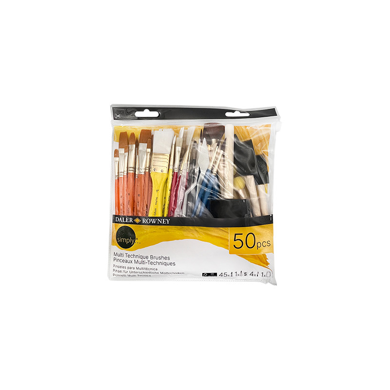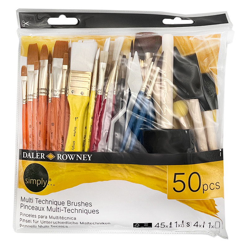 Multi Technique Brushes Simply Daler Rowney – zestaw 50 pędzli i akcesoriów.