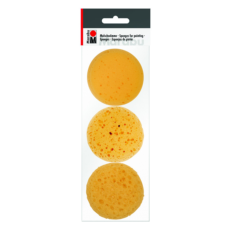 Komplet 3 gąbek marki Marabu do malowania, topowania i blendowania. Syntetyczne, miękkie tworzywo. Każda gąbka o innej porowatości. Więcej szczegółów